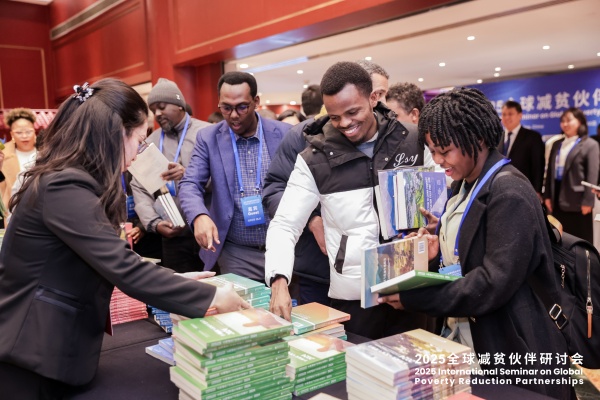 研討會上,國際參會代表駐足中國減貧經驗書籍展區