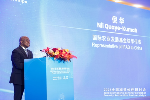 12月10日,2025全球減貧夥伴研討會在北京舉辦。研討會以“強化夥伴協作,應對減貧挑戰”為主題。中國外文局總編輯高岸明、聯合國糧食及農業組織駐華代表卡洛斯、國際農業發展基金駐華代表倪華、聯合國世界糧食計劃署駐華代表趙兵等出席開幕式並致辭。中國國際減貧中心主任劉俊文主持開幕式。