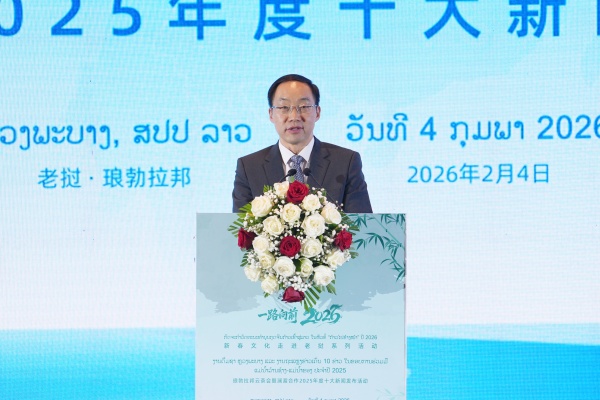北京時間2月4日晚,“瀾湄合作2025年度十大新聞”在老撾琅勃拉邦發布。老撾人民革命黨中宣部副部長、中央理論委員會常務副主席坎蒙·占塔吉,老撾琅勃拉邦省委副書記坎拉·連巴迪,中國外文局副局長於運全,雲南省委宣傳部常務副部長蔡祥榮,中國駐琅勃拉邦總領事張社平,老撾駐昆明總領事邦當·巴薩帕迪等出席活動。中國外交部亞洲司參讚王德鑫視頻致辭。來自中國和瀾湄國家專家學者代表200人參加此次活動。